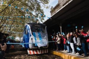 «Es un día histórico, emotivo y emocionante. Venir de Tomás Jofré, pasar por Altamira y llegar a Mercedes viendo los pueblos con sus vecinos y vecinas celebrando el arribo del tren, repletos de felicidad, es hermoso» dijo el intendente Ustarroz.