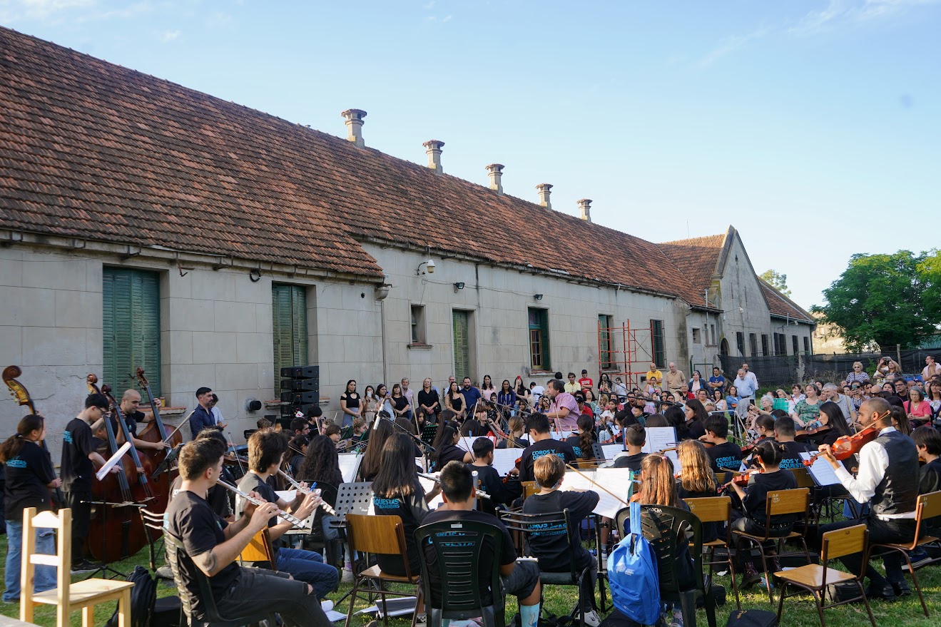 La Orquesta Escuela de Mercedes celebró este miércoles por la tarde el cierre de sus actividades anuales con un recital al aire libre en las instalaciones del Instituto Saturnino Unzué.