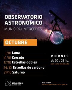 LocalesNoticias varias Publicado 1 octubre, 2025 Octubre llega con nuevas observaciones By Universo Noticias 1 octubre, 2025 26 0 Cuota FacebookTwitterPinterestWhatsApp MAS LEIDAS NecrológicasUniverso Noticias - 23 octubre, 2025BERTA GLADYS LUZ LOPEZ DE PURICELLI NecrológicasUniverso Noticias - 23 octubre, 2025VICTOR EDMUNDO BANZATO NecrológicasUniverso Noticias - 23 octubre, 2025MARIA CRISTINA AGUILERA DE VACHERAND Universo Noticias Vení al Observatorio Astronómico Municipal a conocer más sobre el universo. 👐 Libre y gratuito ✨Una experiencia para toda la familia Cuota FacebookTwitterPinterestWhatsApp Artículo anteriorMultitudinario inicio del 2° Congreso Nacional Educativo MercedesArtículo siguienteMercedes suma dos nuevos colectivos a las líneas urbanas de pasajeros - Publicidad - DEJA UNA RESPUESTA Cancelar respuesta Comentario: Por favor ingrese su comentario! Nombre:* Por favor ingrese su nombre aquí Correo electrónico:* ¡Has introducido una dirección de correo electrónico incorrecta! Por favor ingrese su dirección de correo electrónico aquí Sitio web: Guardar mi nombre, correo electrónico y sitio web en este navegador la próxima vez que comente. Δ - Publicidad - Ultimas noticias NecrológicasUniverso Noticias - 23 octubre, 2025BERTA GLADYS LUZ LOPEZ DE PURICELLIFalleció el día 23 de octubre de 2025 Su esposo Nestor Abelardo Puricelli, sus hijos Gabriel, Miguel, Tamara y... Necrológicas VICTOR EDMUNDO BANZATO Universo Noticias - 23 octubre, 2025 Necrológicas MARIA CRISTINA AGUILERA DE VACHERAND Universo Noticias - 23 octubre, 2025 Necrológicas MARTHA CARMEN ALOISIO vda de AGOSTI Universo Noticias - 23 octubre, 2025 Necrológicas VÍCTOR HUGO RODRÍGUEZ Universo Noticias - 23 octubre, 2025 - Publicidad - MAS NOTICIAS QUE TE PUEDEN INTERESAR El ciclo de la Diversidad cultural cerró el año en el Teatro Argentino. Locales Universo Noticias - 20 octubre, 2025 Miles de estudiantes secundarios participaron de la Expo UNLu 2025 Locales Universo Noticias - 17 octubre, 2025 Estación Juego celebró sus 6 años junto a las familias Locales Universo Noticias - 16 octubre, 2025 Partió una enorme delegación de mercedinos a los Juegos Bonaerenses Locales Universo Noticias - 14 octubre, 2025 - Publicidad -