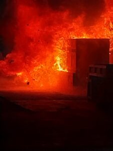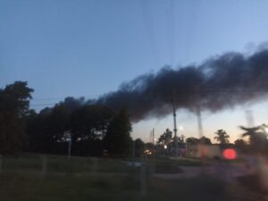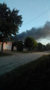 Esta todo el cuerpo de bomberos de Mercedes trabajando. Bajada Gowland cortada por seguridad. Por el momento no se tiene heridos. Pero lógicamente esto sigue. Se entiende demorará muchas horas de actuación. Esta Protección Civil. Es sector caucho / gomas. Todo indica ea por fuera de las naves industriales. Trabaja Bonberos completo. Protección Civil completo. Seguridad municipal. Delegación Gowland. Ampliaremos